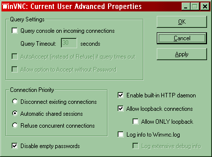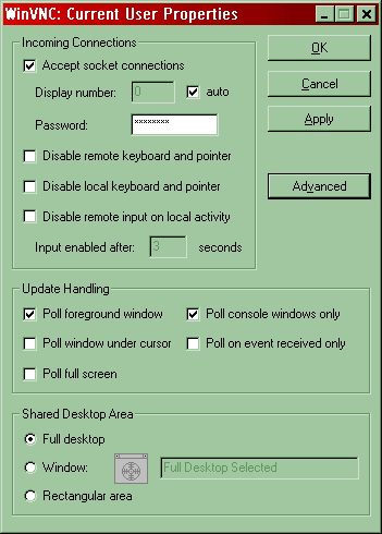 Per TightVNC (snapshot di $win)