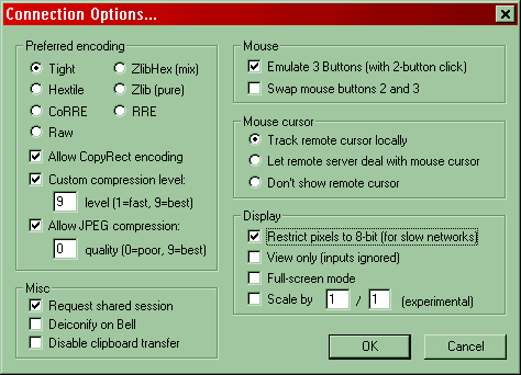 Usa estensivamente la zlib e la compressione jpeg permettendo così l'uso agevole di connessioni con limitata banda passante (buoni risultati si ottengono già con una connessione ISDN a 64Kbits o V92 a 56kbits);